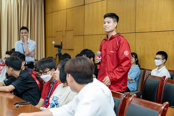 Buổi chia sẻ còn có sự tham gia của các khách mời từ phía trường Đại học Bách Khoa Hà Nội, TS. Trương Công Tuấn - Bí thư Đoàn TNCS Hồ Chí Minh, TS. Nguyễn Minh Quân - Trưởng Ban Học tập , NCKH và hướng nghiệp việc làm.